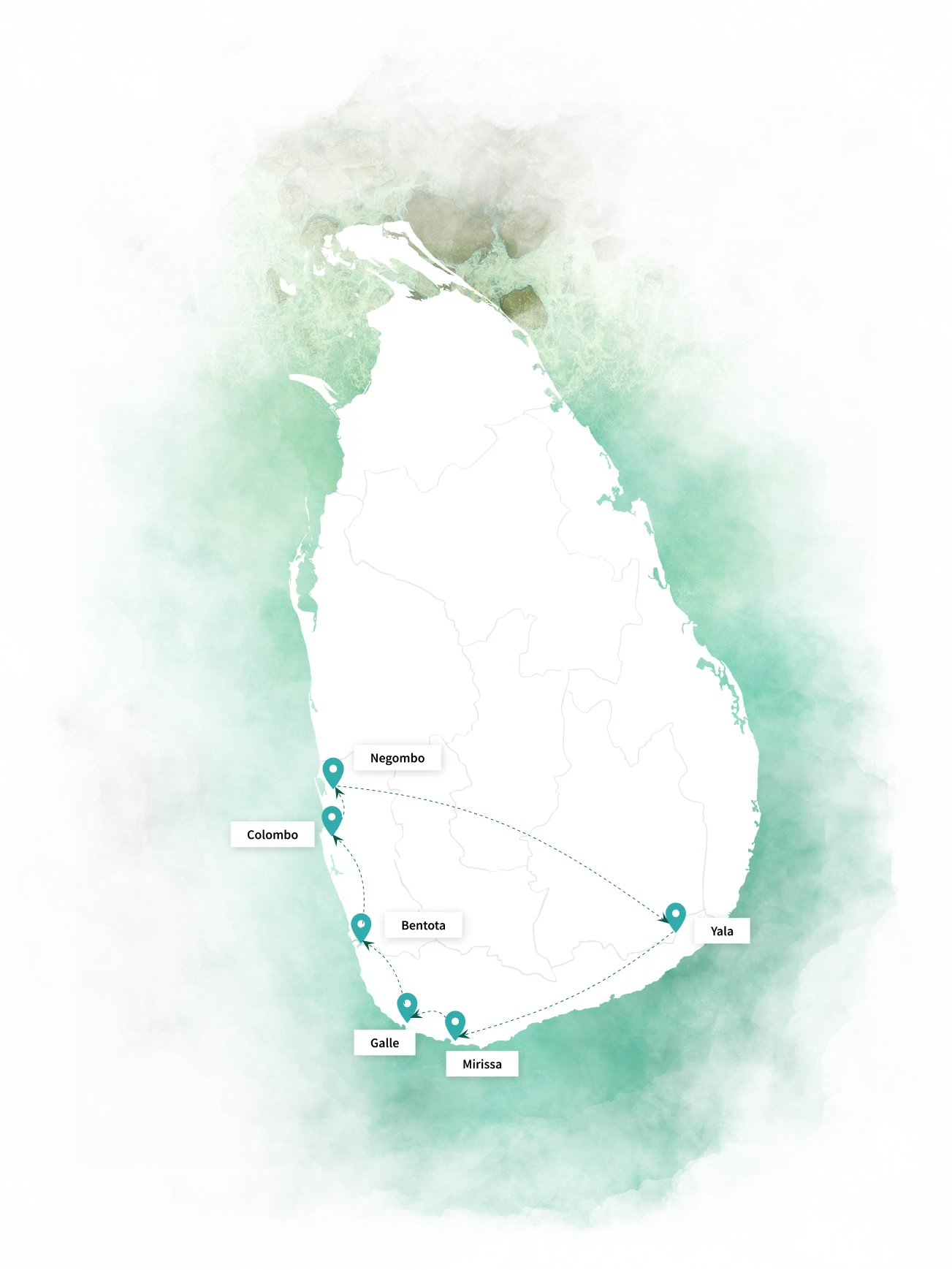 Experience Sri Lanka’s southern beaches, cultural treasures, and wildlife in a compact yet immersive journey. This itinerary blends coastal relaxation, whale watching, elephant and leopard safaris, and UNESCO heritage exploration, offering a perfect balance of adventure and leisure.
